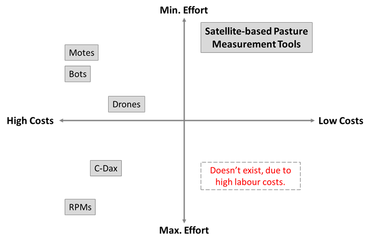 But satellite-based pasture measurement services are hands down the clear winners with respect to cost and effort.